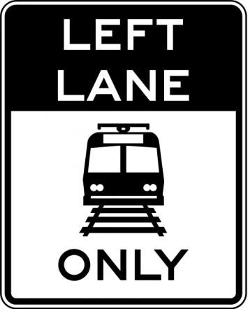 Left Lane Light Rail Transit Only Sign- R15-4b