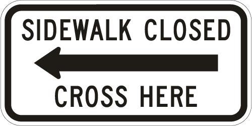 from $26.91R9-11a Sidewalk Closed Cross Here Sign Reflective Sheeting on Aluminum Radius Corners 3/8" Prepunched Holes High Intensity and Diamond Grade Meet ...