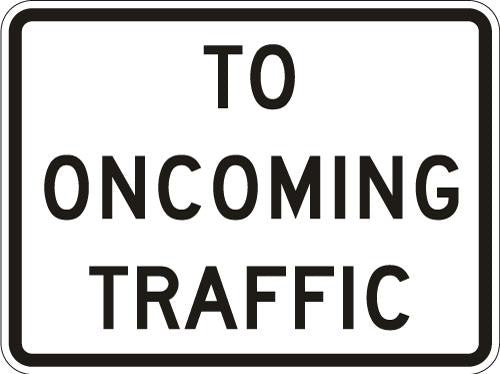 To Oncoming Traffic (Plaque) Sign- R1-2a