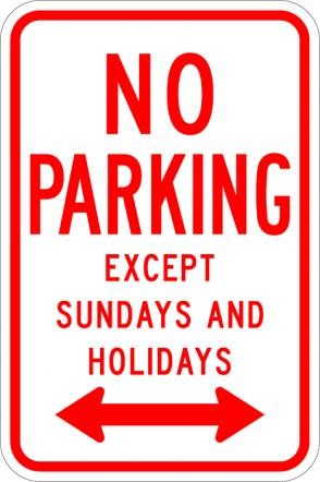 from $23.10R7-3 No Parking Except (dates) Sign Reflective Sheeting on Aluminum Radius Corners 3/8" Prepunched Holes High Intensity and Diamond Grade Meet DOT...