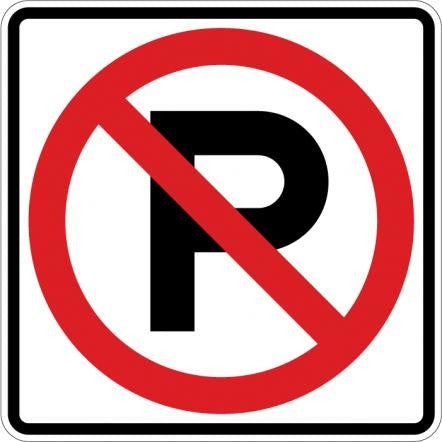 from $29.42R8-3a No Parking Symbol Sign Reflective Sheeting on Aluminum Radius Corners 3/8" Prepunched Holes High Intensity and Diamond Grade Meet DOT and MU...