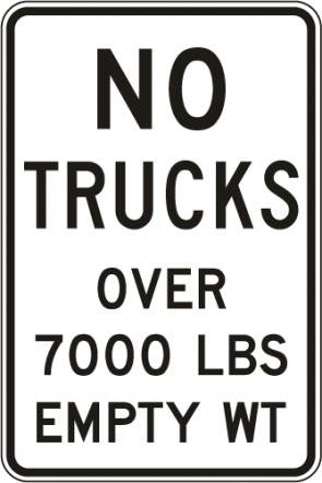 from $5.80R12-3 No Trucks Over XX Sign Reflective Sheeting on Aluminum Radius Corners 3/8" Prepunched Holes High Intensity and Diamond Grade Meet DOT and MU...