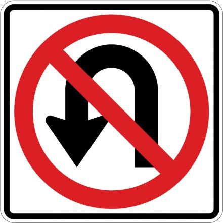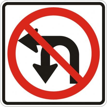 from $5.80R3-4 No U Turn Sign Reflective Sheeting on Aluminum Radius Corners 3/8" Prepunched Holes High Intensity and Diamond Grade Signs Meet DOT and MUTCD...
