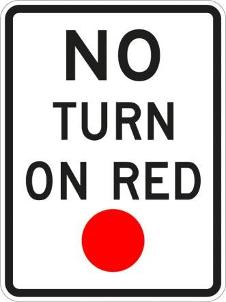from $34.06R10-11b No Turn On Red Sign Reflective Sheeting on Aluminum Radius Corners 3/8" Prepunched Holes High Intensity and Diamond Grade Meet DOT and MUT...