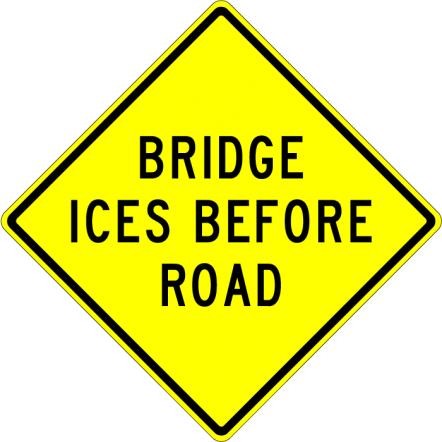 from $41.72W8-13 Bridge Ices Before Road Sign Reflective Sheeting on Aluminum Radius Corners 3/8" Prepunched Holes High Intensity and Diamond Grade Meet DOT ...