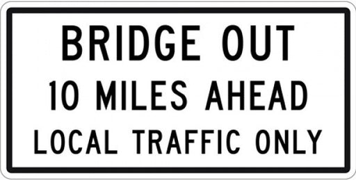 from $133.98R11-3b Bridge Out Local Traffic Only Sign Reflective Sheeting on Aluminum Radius Corners 3/8" Prepunched Holes High Intensity and Diamond Grade Me...