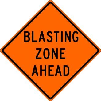 from $41.72W22-1-O Blasting Zone Ahead Sign Reflective Sheeting on Aluminum Radius Corners 3/8" Prepunched Holes High Intensity and Diamond Grade Meet DOT an...