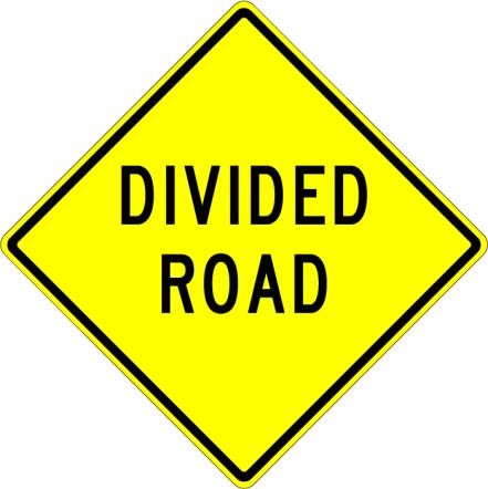 from $41.72W6-1b Divided Road Sign Reflective Sheeting on Aluminum Radius Corners 3/8" Prepunched Holes High Intensity and Diamond Grade Meet DOT and MUTCD S...